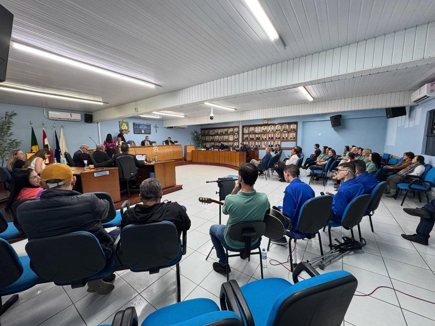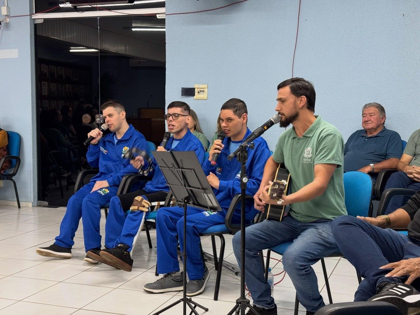 Durante a sessão, o público também acompanhou uma apresentação musical realizada pelos alunos da APAE, sob a condução do professor de música da entidade, emocionando os presentes e evidenciando o trabalho desenvolvido com foco na inclusão e no desenvolvimento das habilidades.