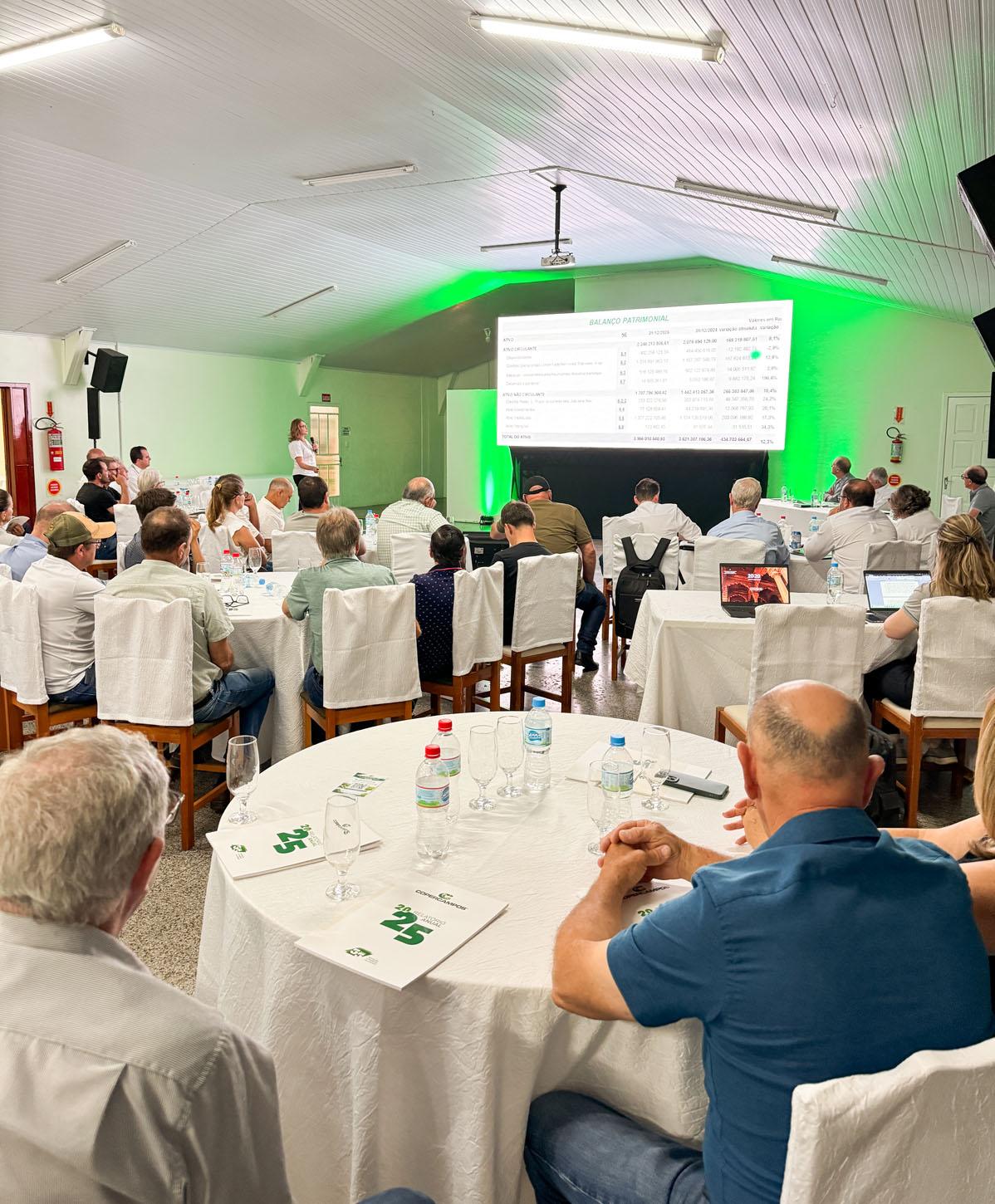 Durante a assembleia, o Conselho de Administração apresentou a análise dos negócios e os principais indicadores econômicos e sociais da cooperativa, reforçando a transparência e a participação dos associados nas decisões estratégicas da organização.