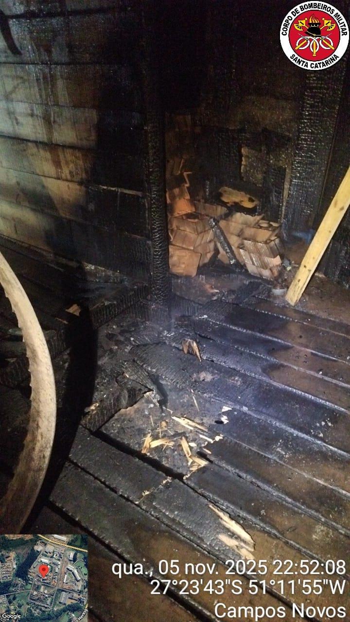 Na noite desta quarta-feira (05), por volta das 22h22, as guarnições das viaturas ABTR-217, ASU-595 e AT-76 do Corpo de Bombeiros foram acionadas via COBOM para atender a um incêndio em uma madeireira localizada na rua Júlio Henrique Ribeiro, no Bairro Aparecida, em Campos Novos.
