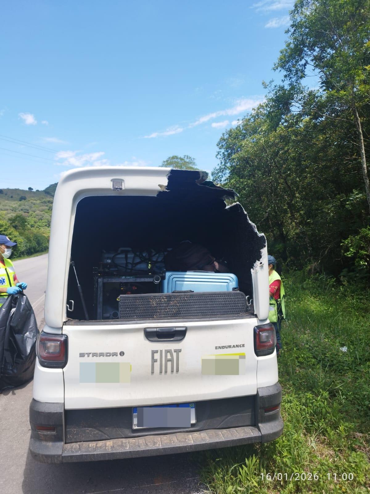 Diante da situação, a Polícia Rodoviária Federal (PRF) foi acionada, uma vez que o veículo estava estacionado no acostamento da rodovia. Após os procedimentos iniciais, o local ficou sob responsabilidade da PRF.