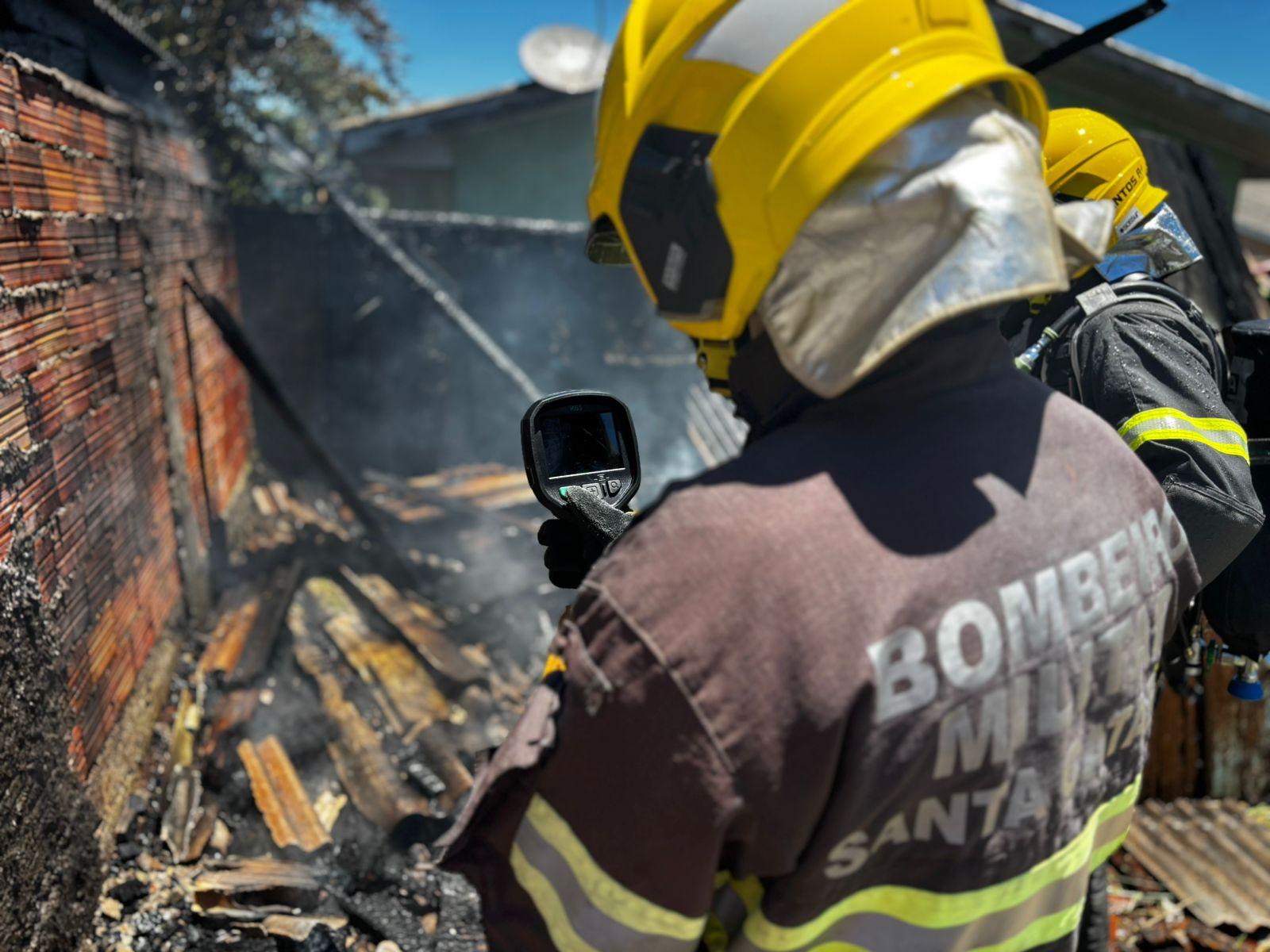 Na manhã desta terça-feira (11), por volta das 12h20min, o trem de socorro foi acionado para conter um incêndio em uma residência localizada na rua Francisco Danilo Valente, no bairro Senhor Bom Jesus, município de Campos Novos. O foco das chamas foi identificado num depósito de madeira situado atrás da casa principal.