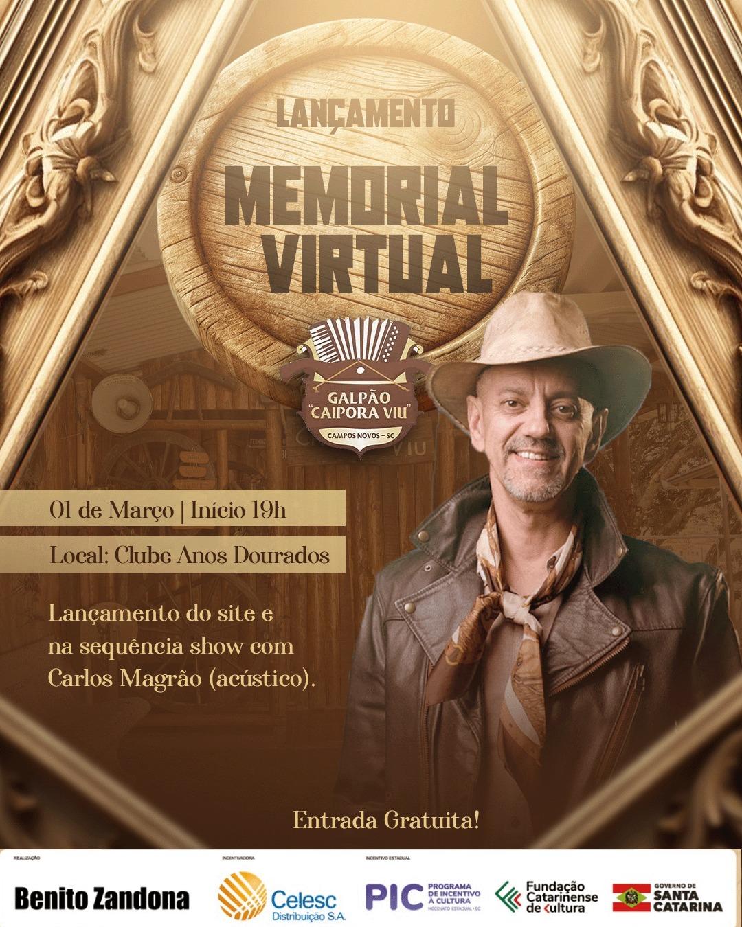 O lançamento oficial do memorial também integrará a abertura das comemorações do aniversário de Campos Novos. Durante o evento, o público poderá conhecer o projeto em apresentação oficial e acompanhar um show musical Musical com Carlos Magrão a partir das 19h, celebrando a história e a cultura regional.