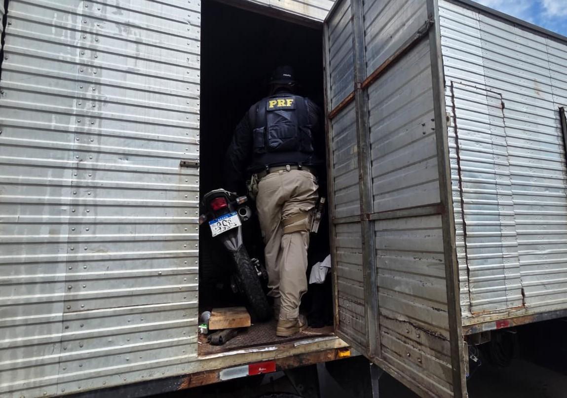 Na manhã desta segunda-feira (23), durante fiscalização na BR-282 em Campos Novos, policiais rodoviários federais flagraram seis pessoas sendo transportadas irregularmente dentro do compartimento de carga de um caminhão.